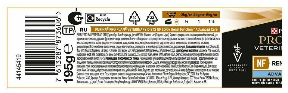 Ниже Вы можете прочитать отзывы на Влажный корм для кошек Purina Veterinary Diets NF St/Ox Renal Function Advanced Care, паштет, упаковка 12 шт х 195 гр, ознакомится с подробными характеристиками, посмотреть интересные обзоры и фотографии на Влажный корм для кошек Purina Veterinary Diets NF St/Ox Renal Function Advanced Care, паштет, упаковка 12 шт х 195 гр.