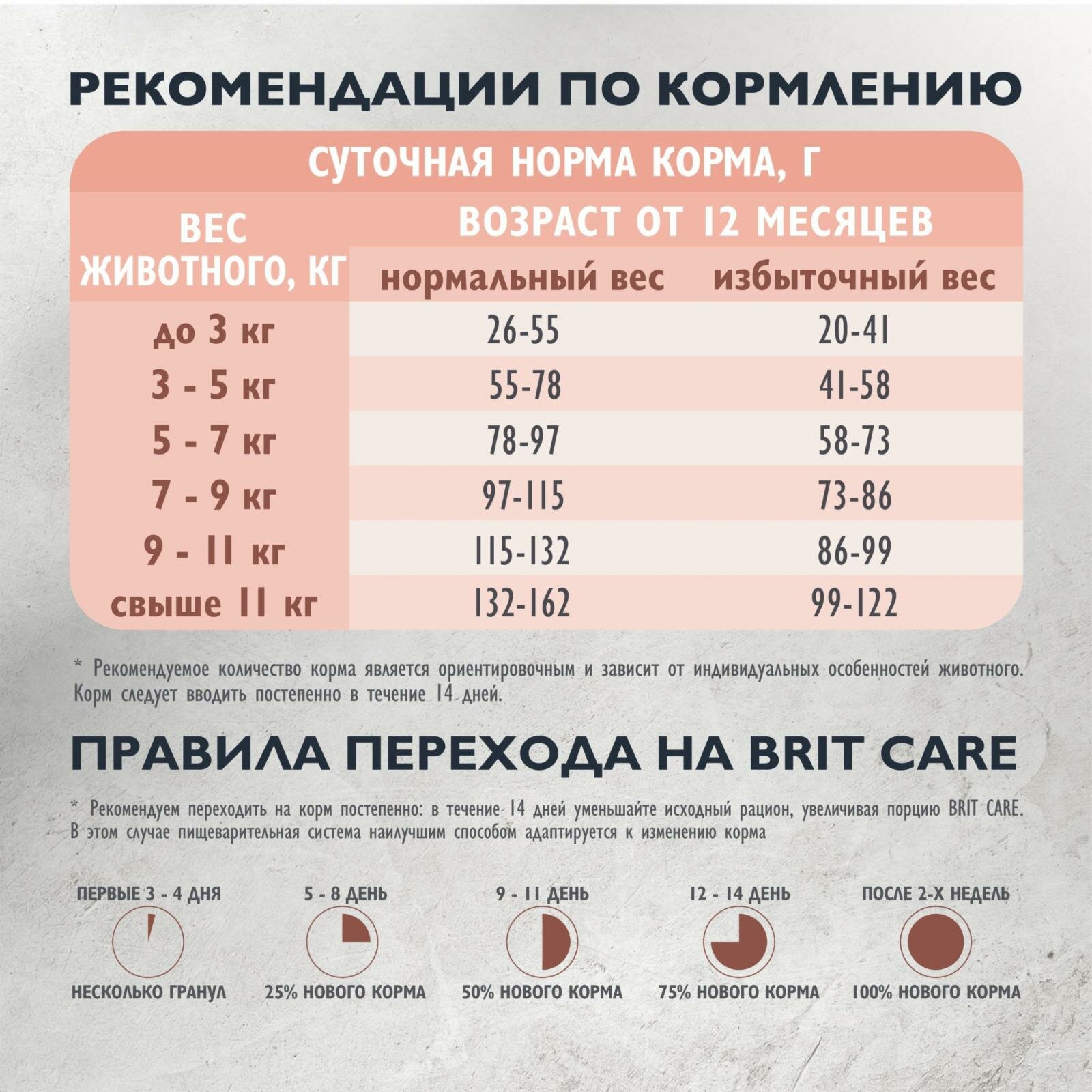| Дозировка | вес кошки 2-3кг - 30-46 г/день вес кошки 3-5 кг -46-67 г/день вес кошки 5-7 кг - 67-80 г/день вес кошки 8-10 кг - 91-114 г/день |