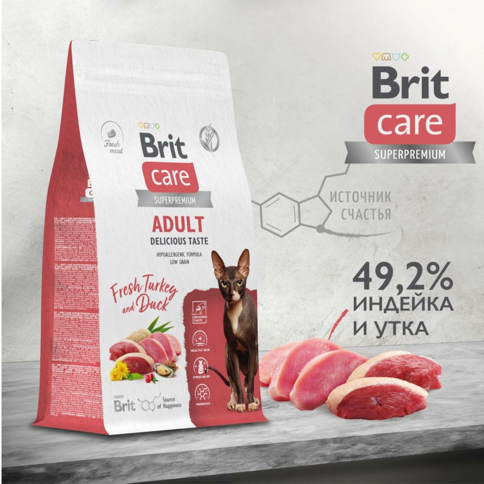 Сухой корм для взрослых кошек привередливых к вкусу корма супер-премиум с индейкой и уткой "Cat Adult Delicious Taste" BRIT CARE1,5 кг