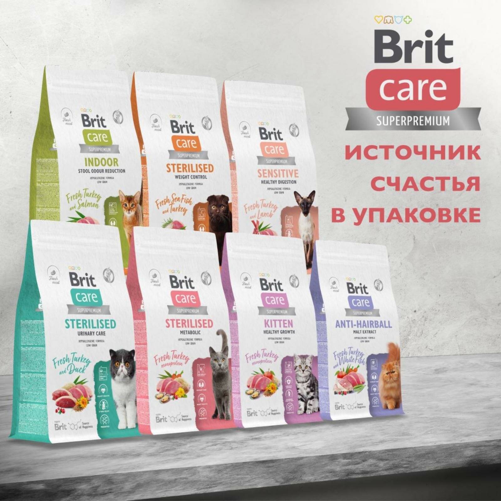 BRIT CARE, Сухой корм с белой рыбой и индейкой для взрослых кошек "Cat Anti-Hairball ", 1.5 кг