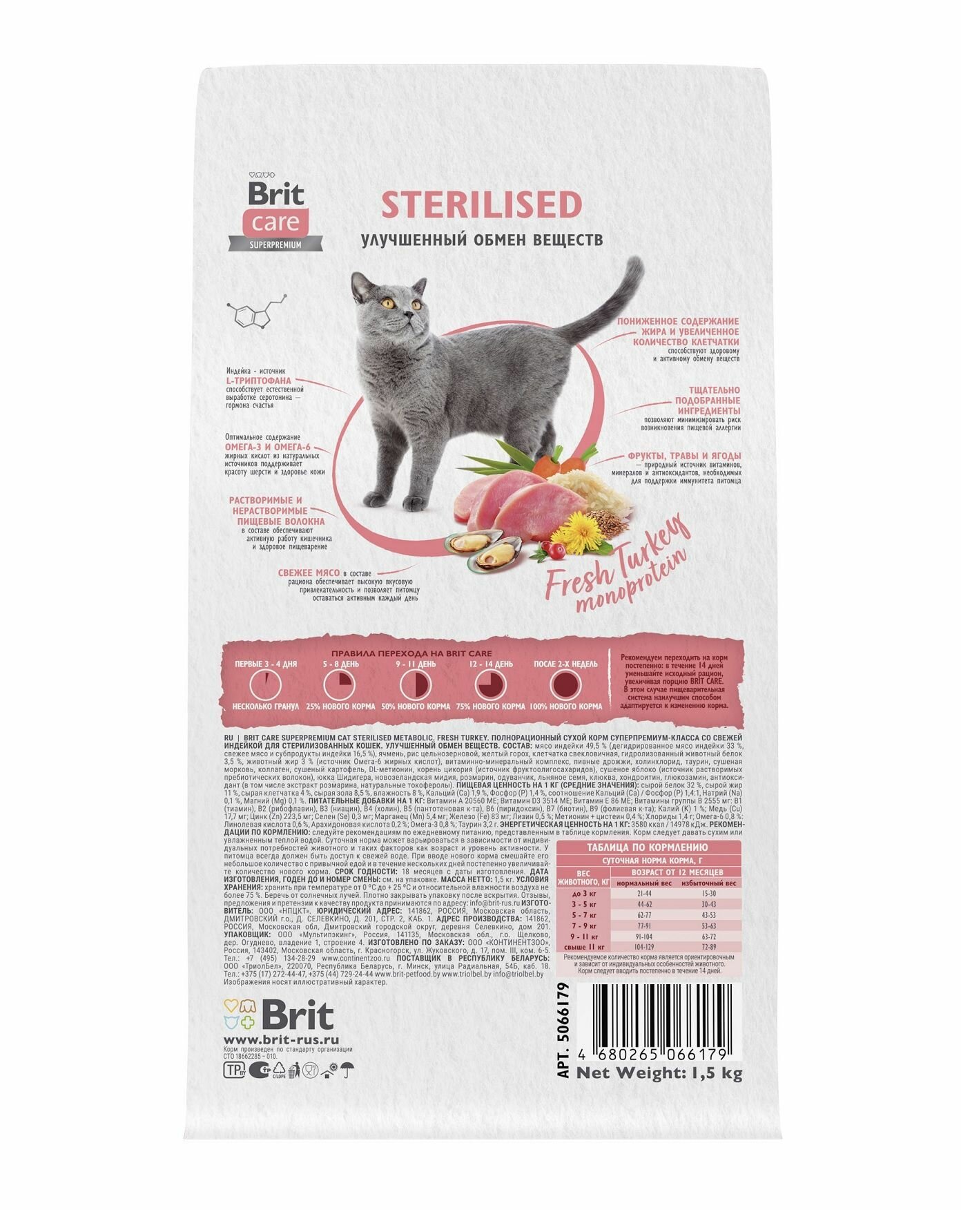 Купить Сухой корм Brit Care Cat Sterilised Metabolic для стерилизованных кошек, с индейкой, улучшенный обмен веществ 1.5 кг
