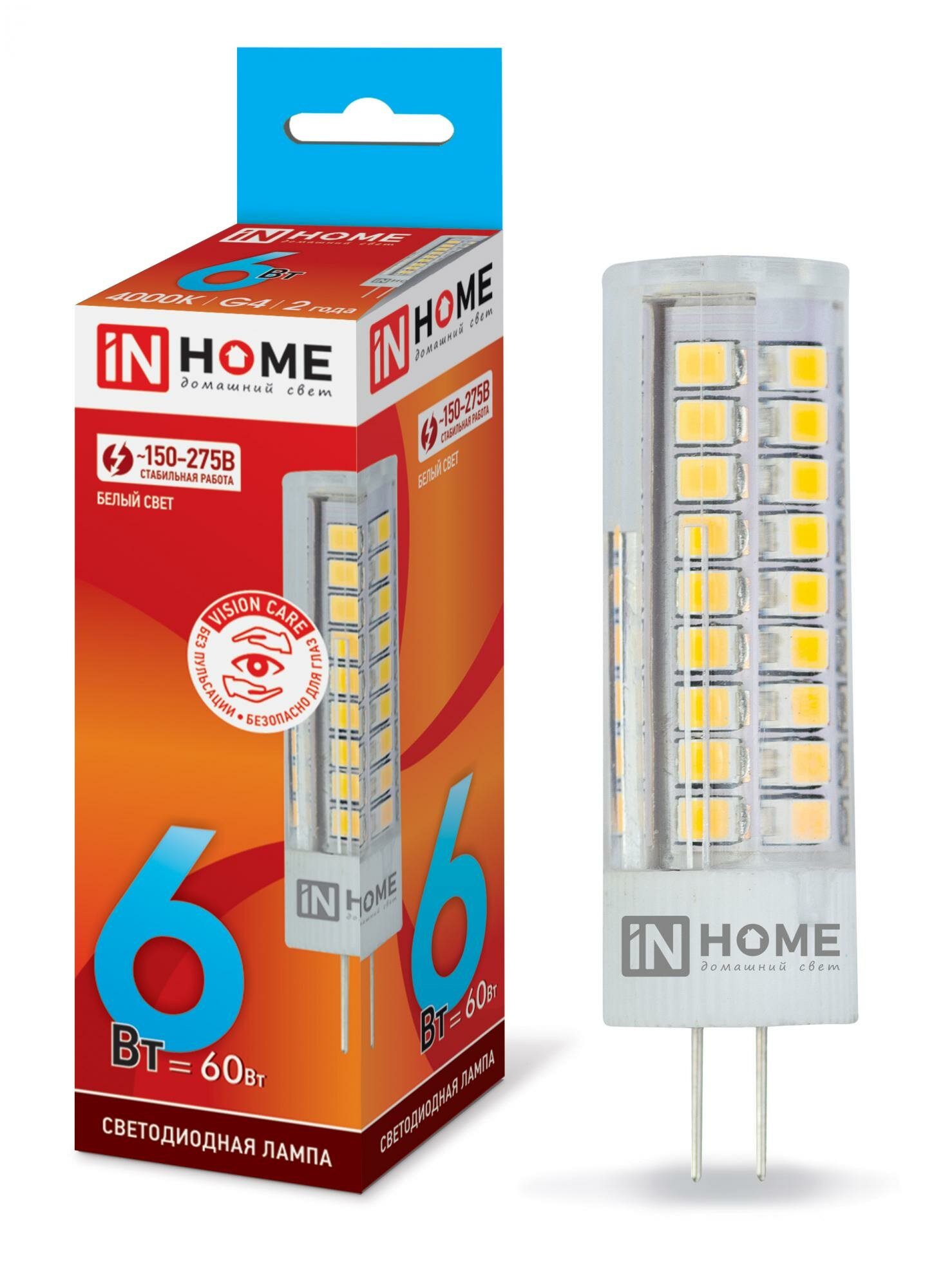 Лампа светодиодная IN HOME LED-JCD-VC, G9, JCD, 3 Вт, 4000 К