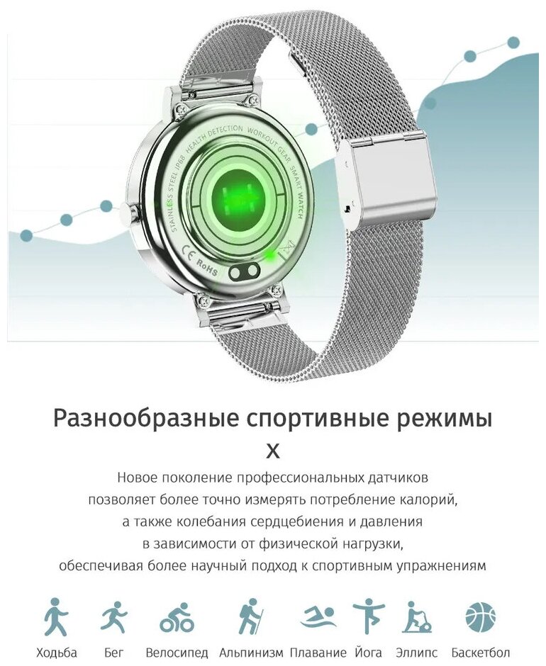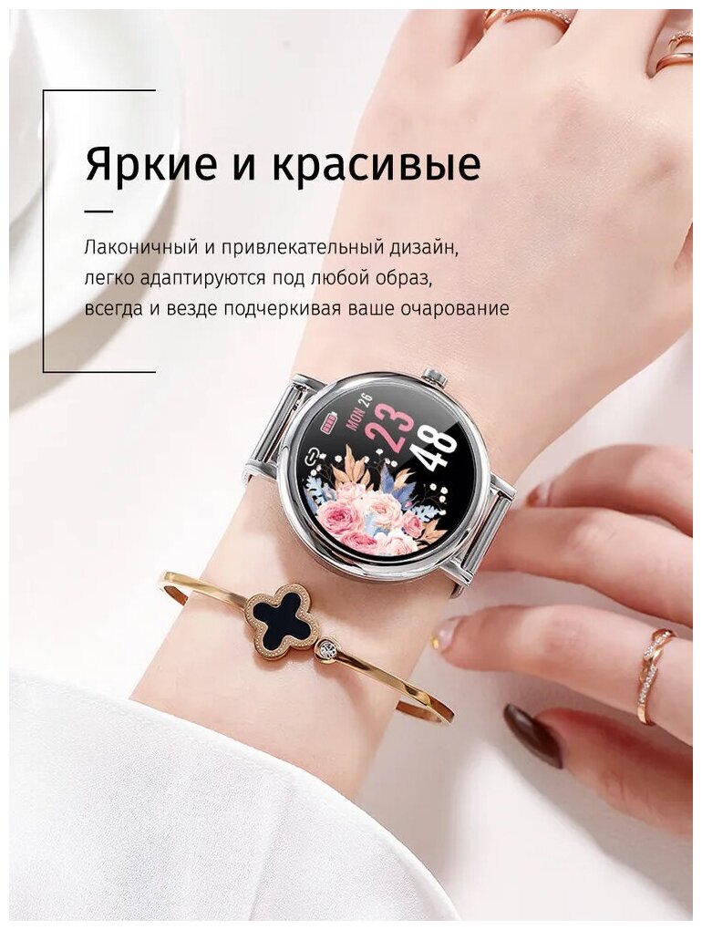 Женские смарт часы SMART PRESENT LW умные наручные круглые, серебристые, металлический ремешок интересное: