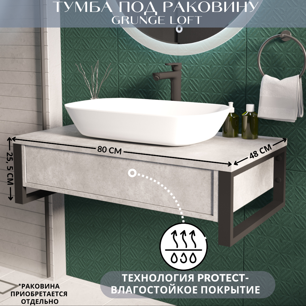 Купить Тумба для ванной GRUNGE LOFT 80П 1в. я Бетон светлый