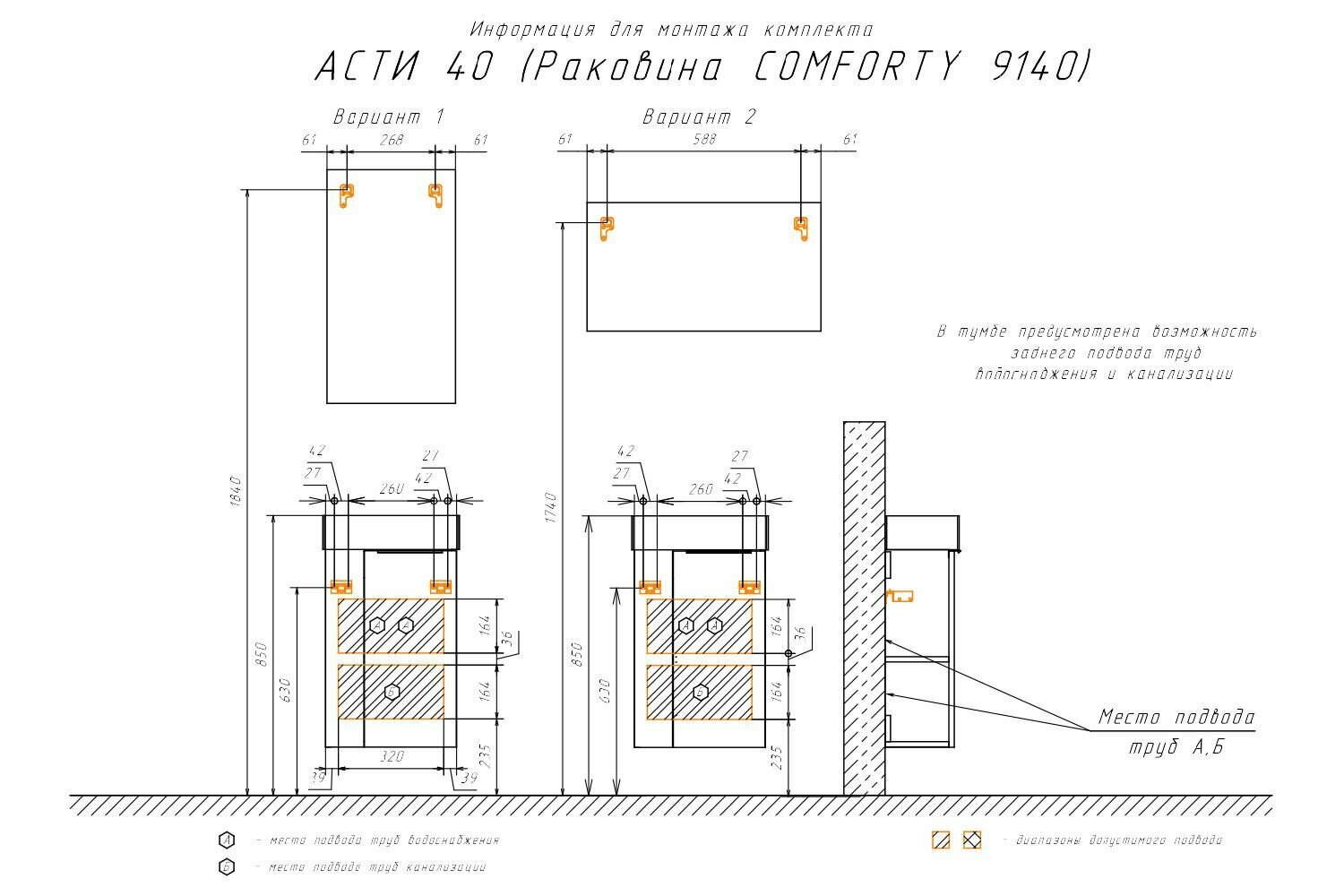 Тумба-умывальник "Асти-40" белый глянец с рак. COMFORTY 9140