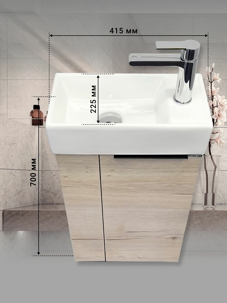 Тумба с раковиной Comforty "Асти-40", дуб темно-коричневый, подвесная, 41,5 см x 70 см x 22,5 см