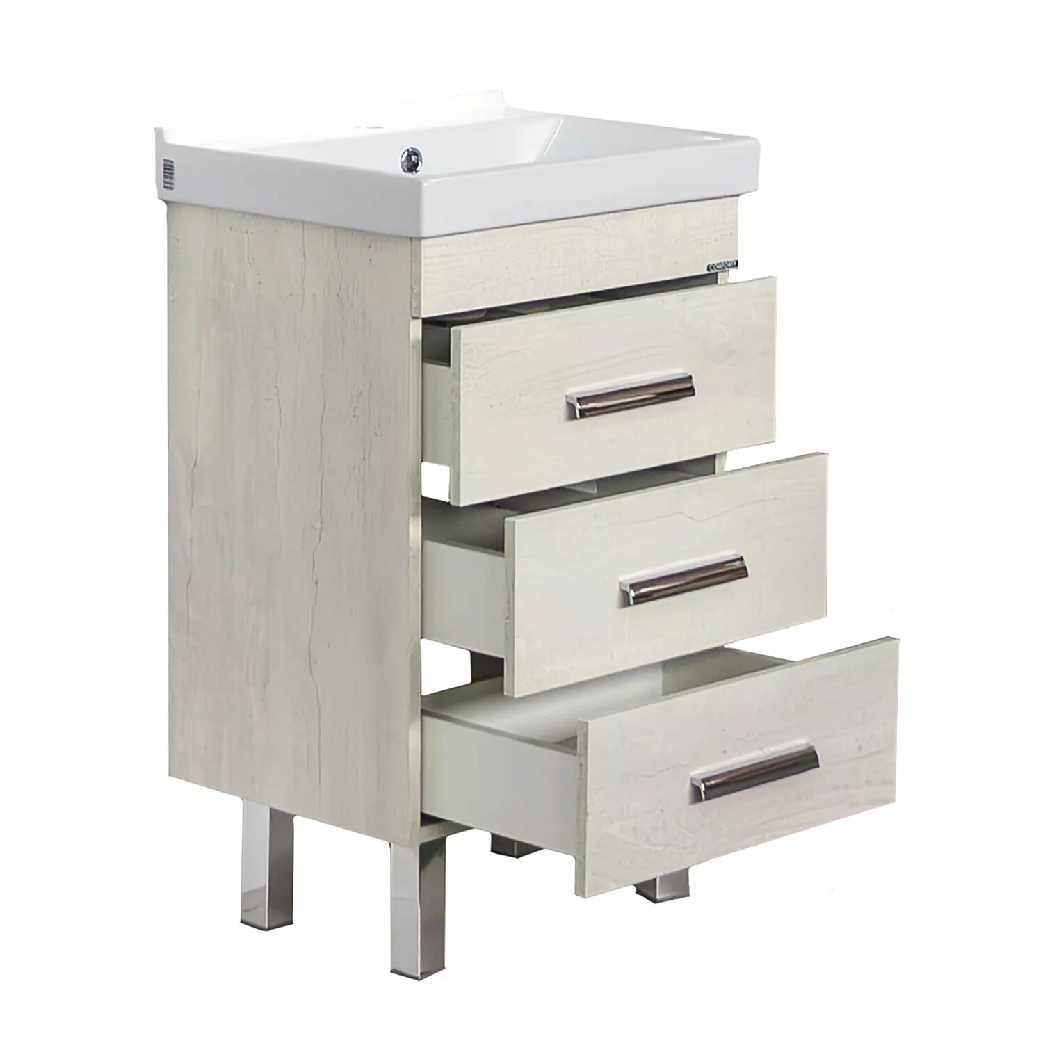 Купить Напольная тумба с раковиной шириной 50 см для ванной Comforty Никосия-50Н дуб белый