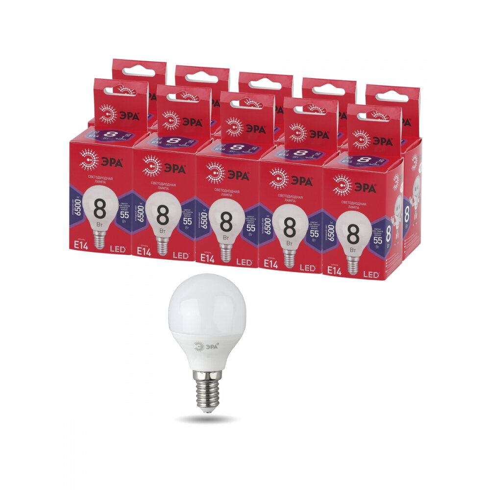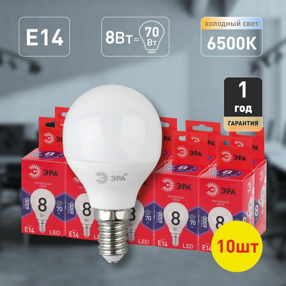 Светодиодные лампочки ЭРА RED LINE LED P45-8W-865-E14 R Е14 / E14 8 Вт шар холодный дневной свет набор 10 штук интересное: