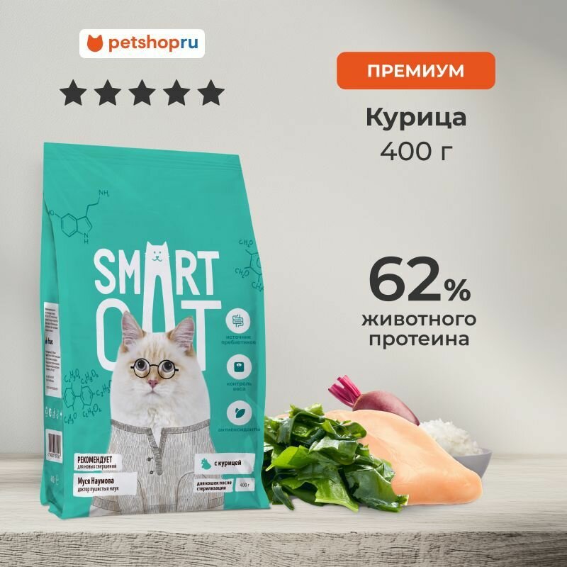 SmartCat Сухой корм для стерилизованных кошек с курицей 400г. 0.4 кг