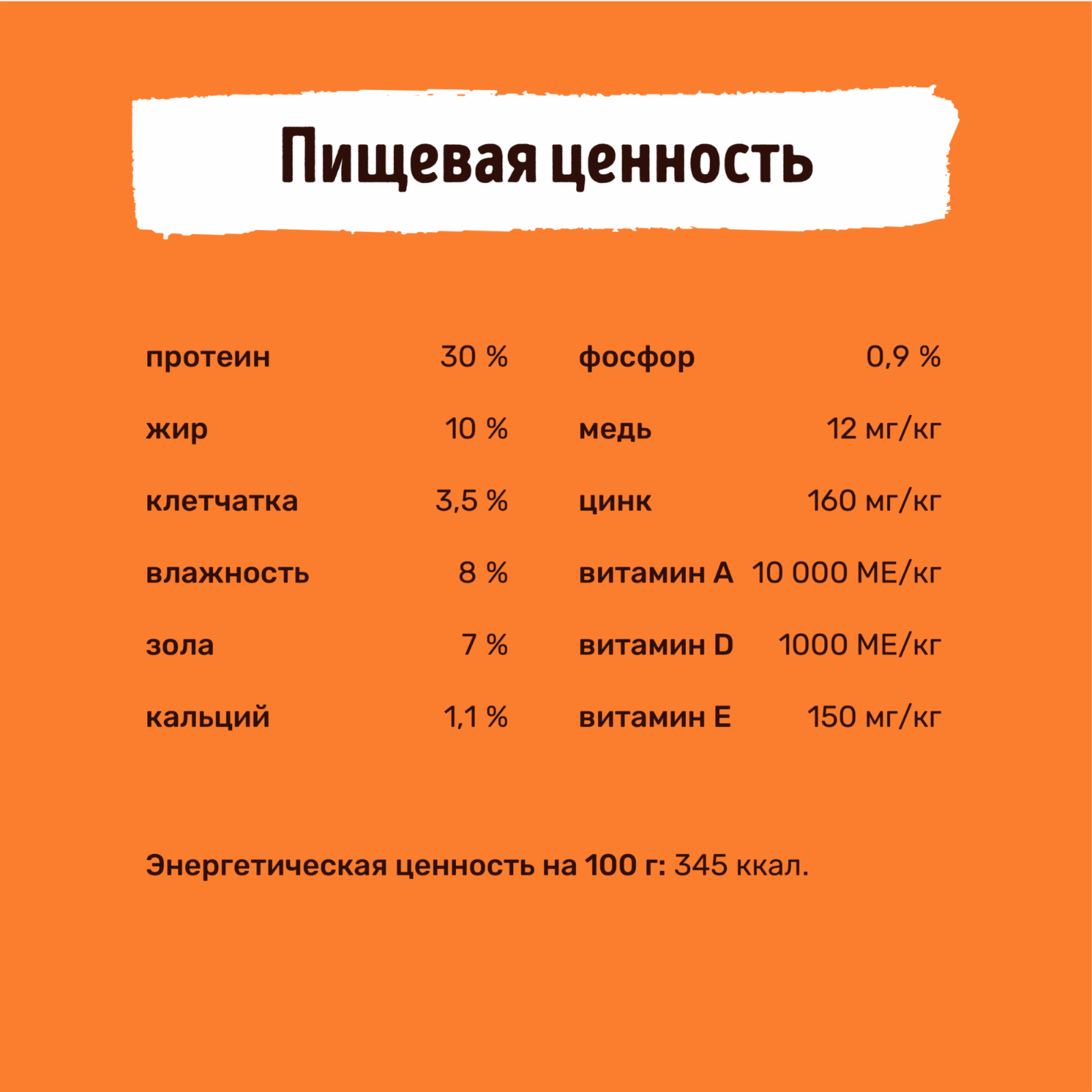 | Минусы: | К сожалению, наличие мясной муки расстраиваает, но цена-качество. Очень мало белка, не жирный. Отсутствует замок на пакете. |