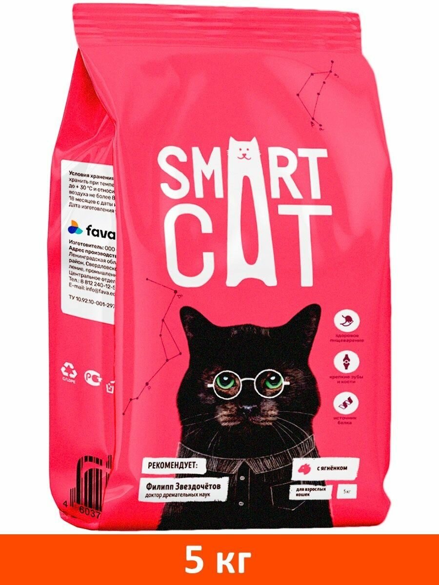 Smart Cat сухой корм Для взрослых кошек с ягненком , 5 кг (1 шт)
