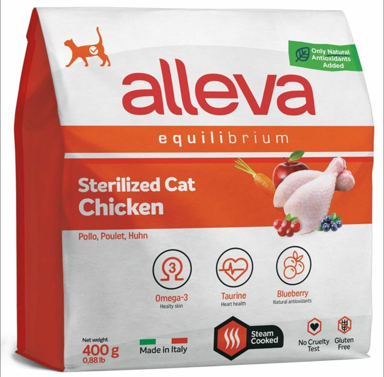 ALLEVA EQUILIBRIUM ADULT CAT STERILIZED CHICKEN для взрослых кастрированных котов и стерилизованных кошек с курицей (0,4 + 0,4 кг)