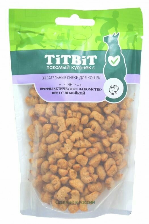 Профилактическое лакомство для кошек, снеки жевательные, с индейкой, Титбит, DENT, 40г, 5 шт.