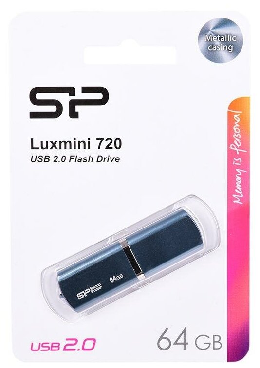 Память USB Flash 64 ГБ Silicon Power LuxMini 720 (SP064GBUF2720V1H) - колпачок, металл, USB 2.0, чтение - 18 Мб/с