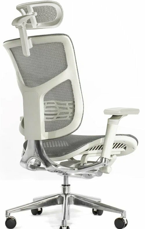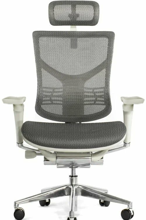 Эргономичное кресло Falto Expert 2 STAR с подножкой, сетка серая / каркас белая скала хром