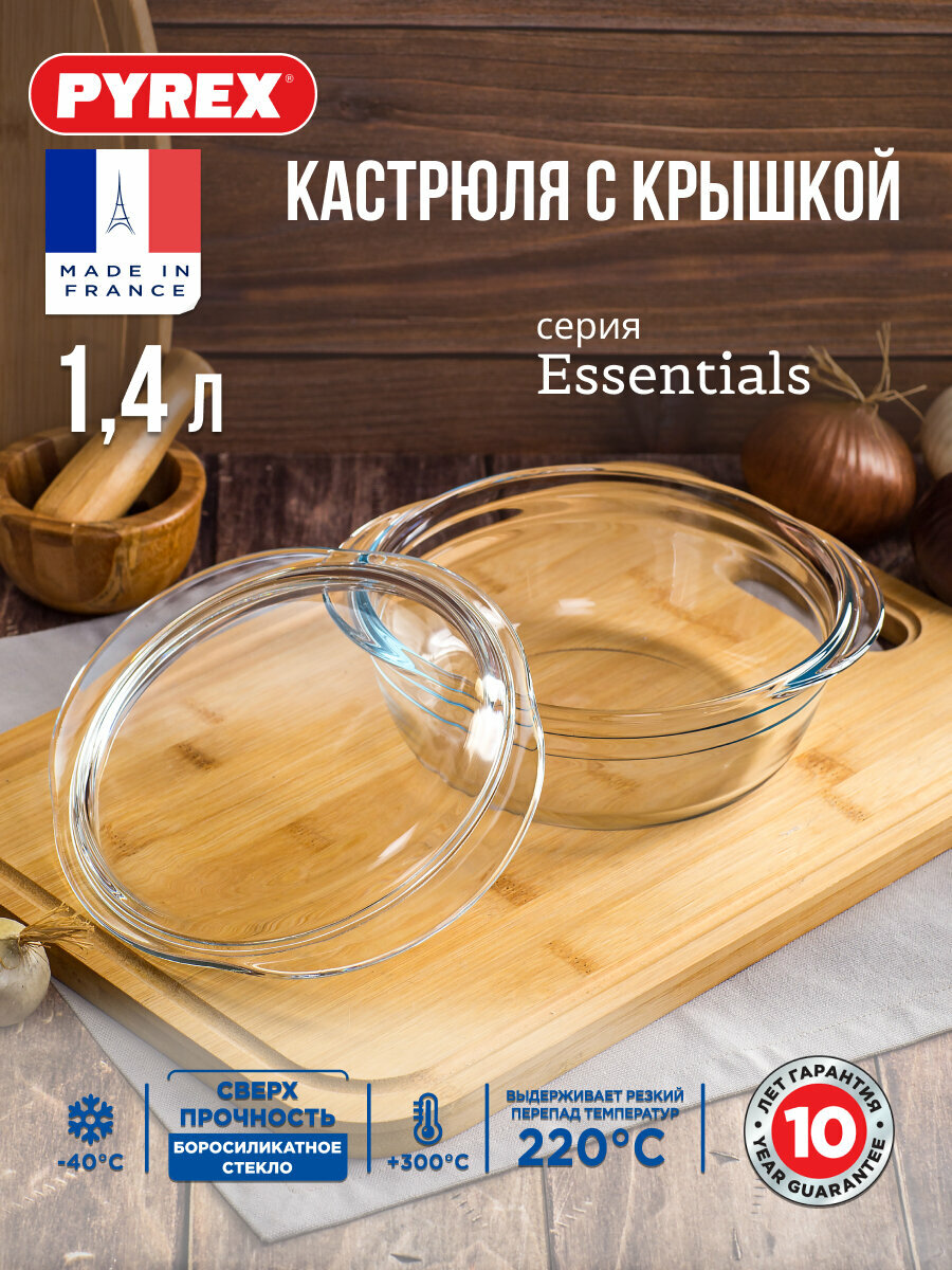 Кастрюля для запекания круглая с крышкой Pyrex ESSENTIALS 1.4л 18см