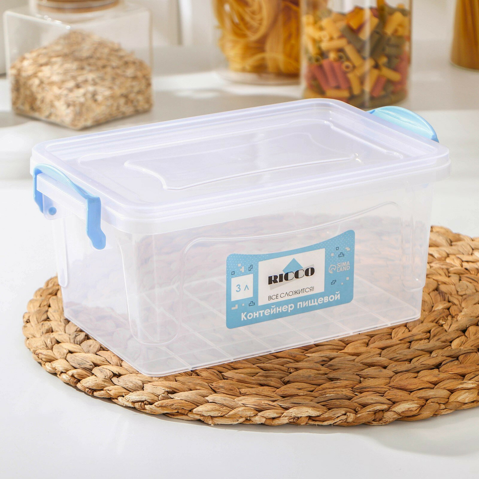Контейнер пищевой RICCO, 3 л, 28×16×12 см, прямоугольный, цвет прозрачный, голубой