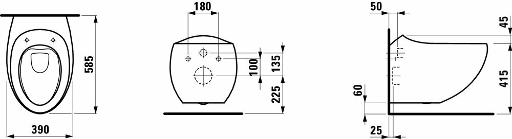 Laufen Alessi One Унитаз подвесной 585х390х355мм, безободковый, с покр. LLC, цвет: белый