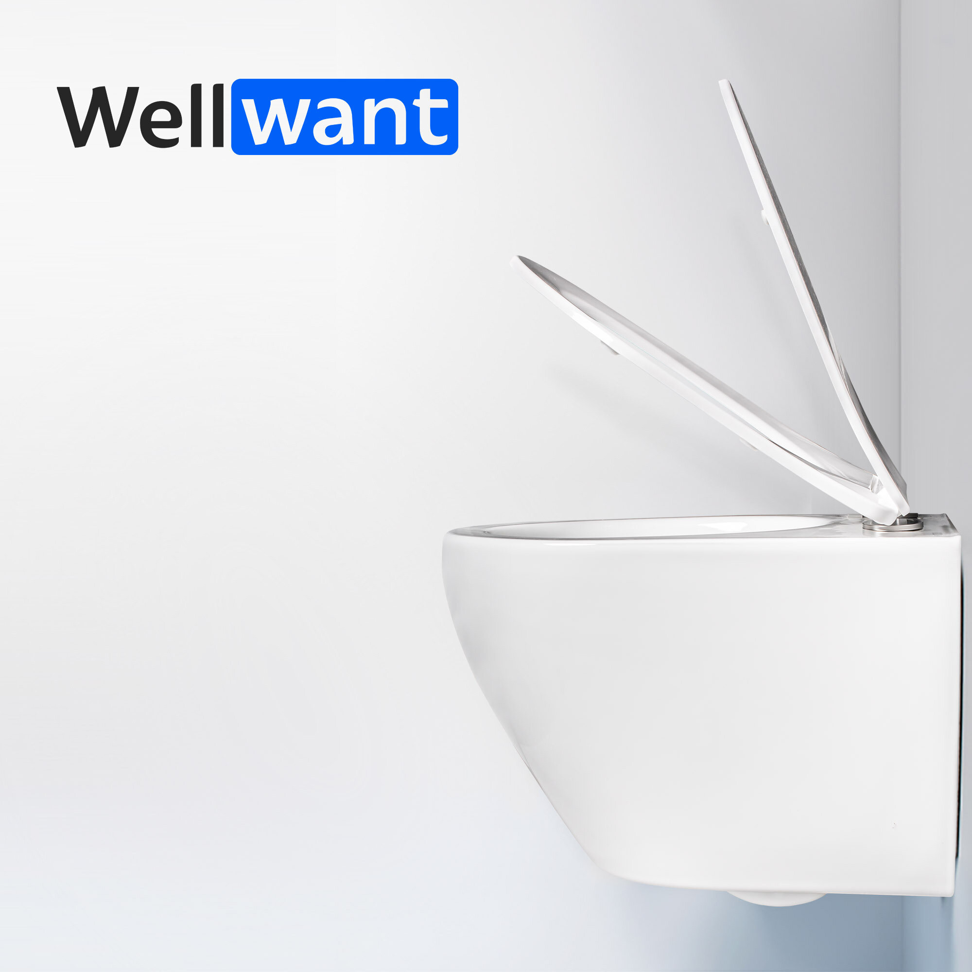 Купить Унитаз безободковый подвесной WellWant Aura WWU01122W с быстросъемным сиденьем Микролифт