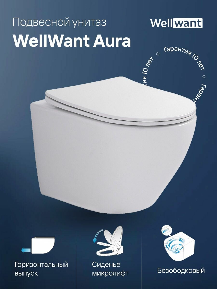 Унитаз безободковый подвесной WellWant Aura WWU01122W с быстросъемным сиденьем Микролифт интересное: