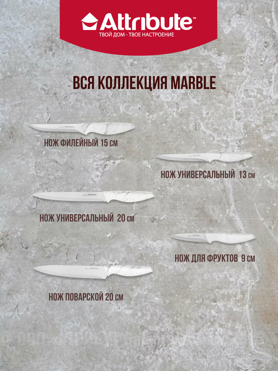Нож универсальный ATTRIBUTE "MARBLE", 20см, нержавеющая сталь/пластик интересное: