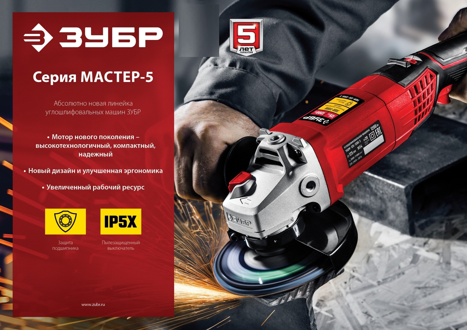 Болгарка 125 мм, УШМ (Машина шлифовальная угловая) ЗУБР 1500 Вт, плавный пуск, Профессионал