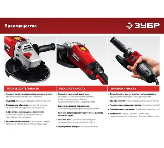 УШМ ЗУБР 2600 Вт, d230 мм,(УШМ-230-2605 П)