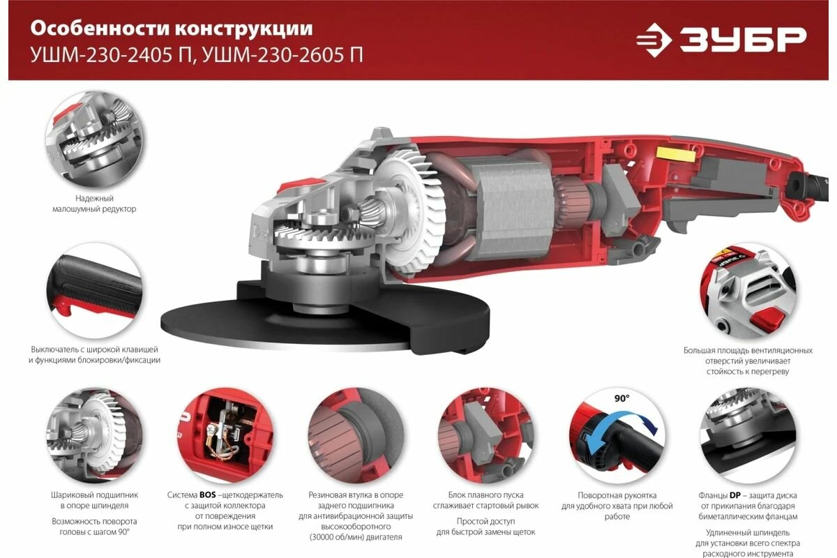 УШМ ЗУБР 2600 Вт, d230 мм,(УШМ-230-2605 П)