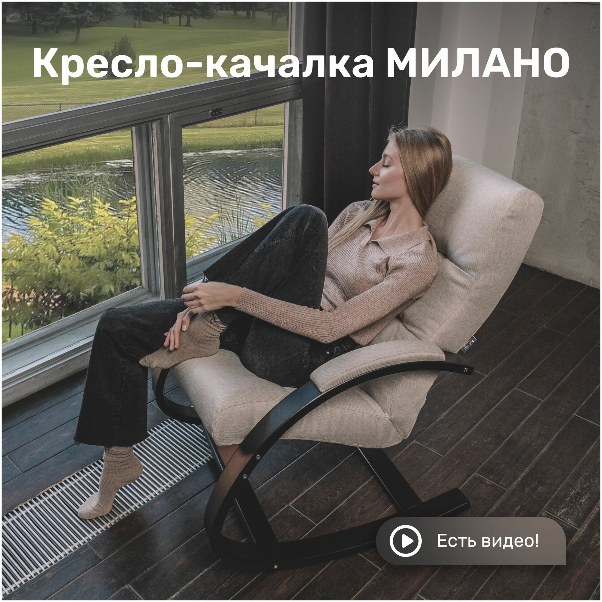 Кресло качалка, кресло для отдыха Милано, Слоновая кость, рогожка Malmo 95