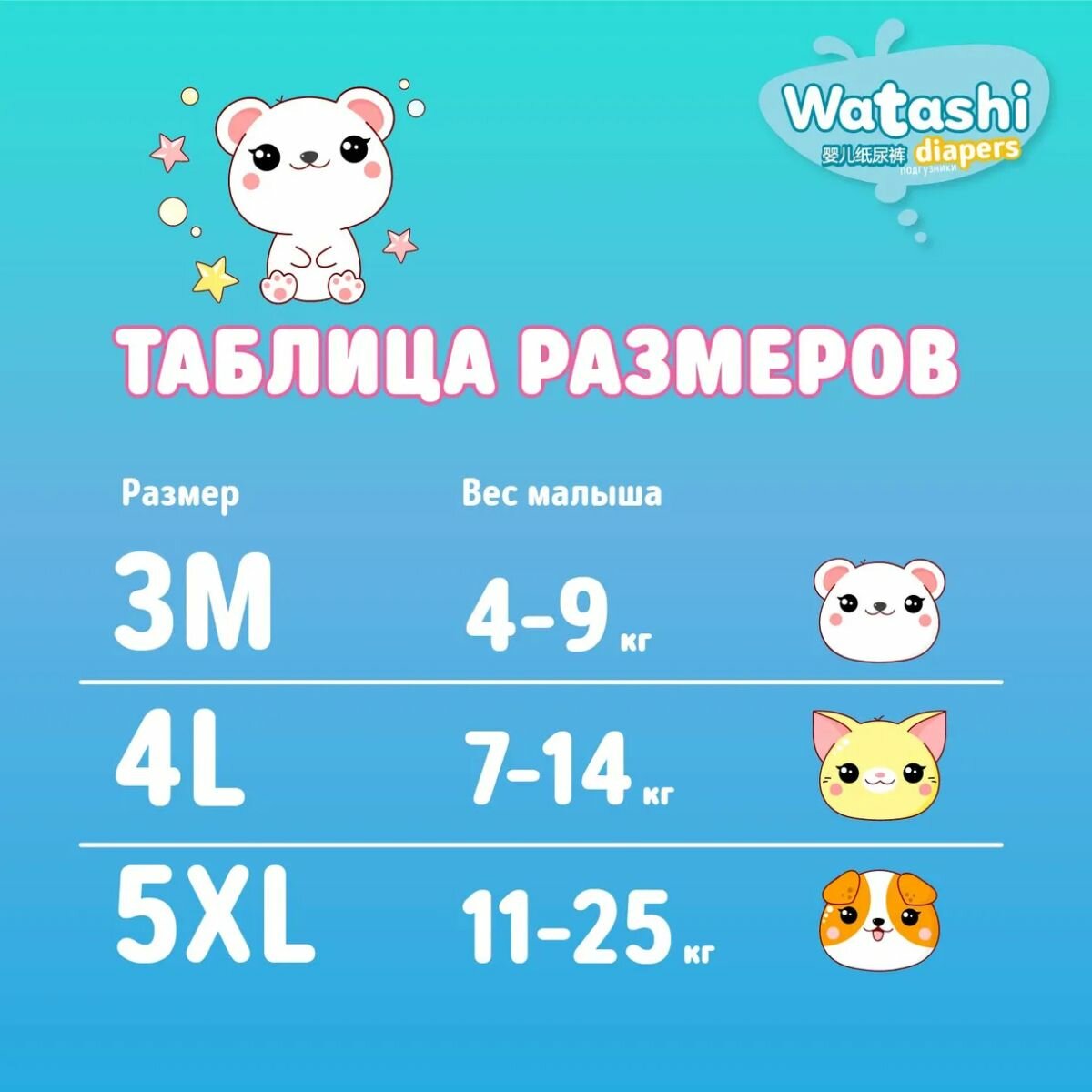 WATASHI Подгузники-трусики одноразовые WATASHI для детей 3/М 6-10 кг 52шт