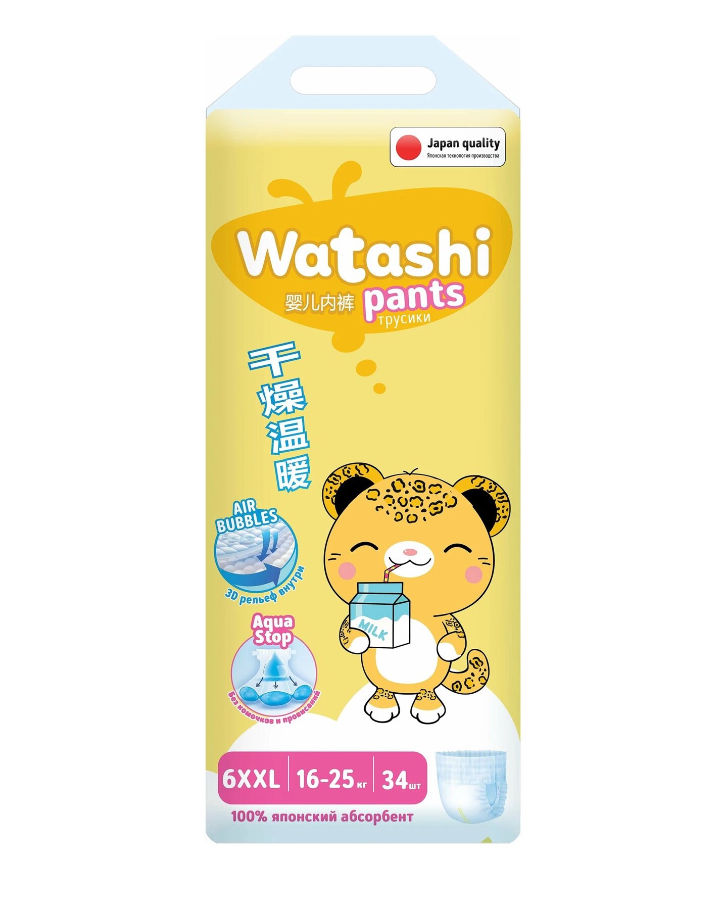 Подгузники трусики детские 6 XXL размер 16-25 кг, 34 шт, WATASHI