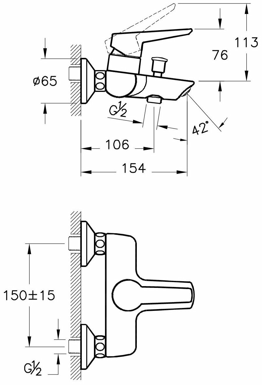 Смеситель для ванны/душа Vitra Solid S настенный, однозахватный, короткий излив, цвет:хром A42444EXP