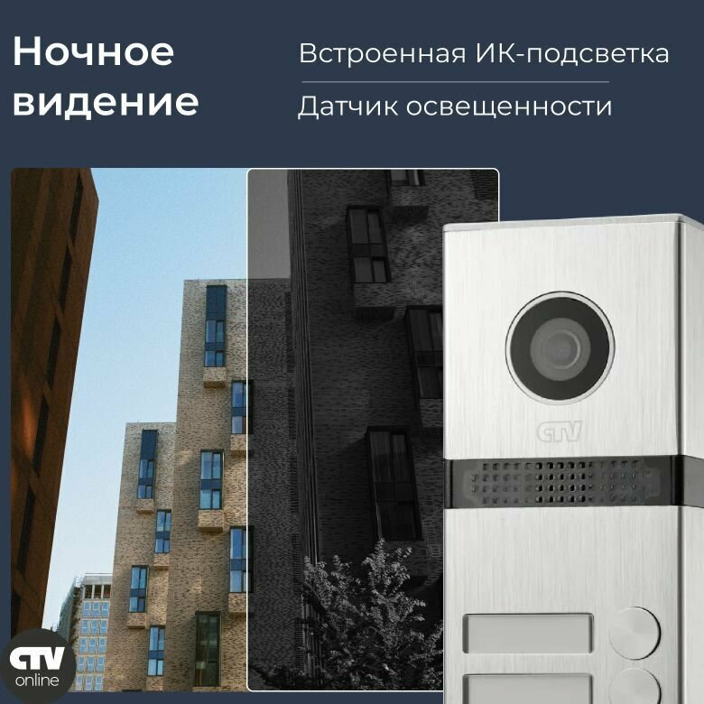 CTV D4Multi (серебро) - вызывная панель видеодомофона для квартиры, дома или офиса на 4 абонента антивандальная, объектив 2,5 мм, разрешение видеокамеры 1920x1080, ИК-подсветка "День/Ночь"