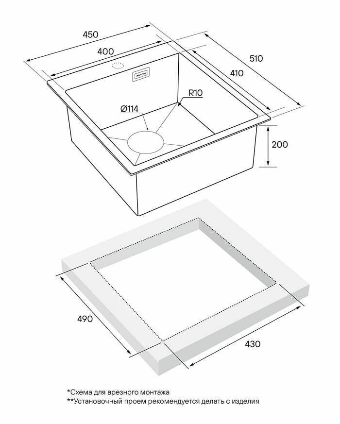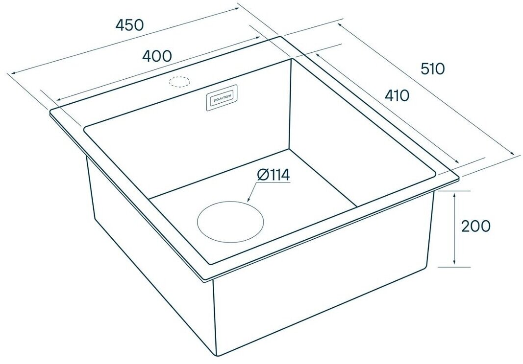Мойка для кухни из нержавеющей стали AISI304 Paulmark VELTEN 45, 450х510 мм, PVD и шумопоглащающее покрытие, отверстие под смеситель, универсальный монтаж, цвет нерж. сталь