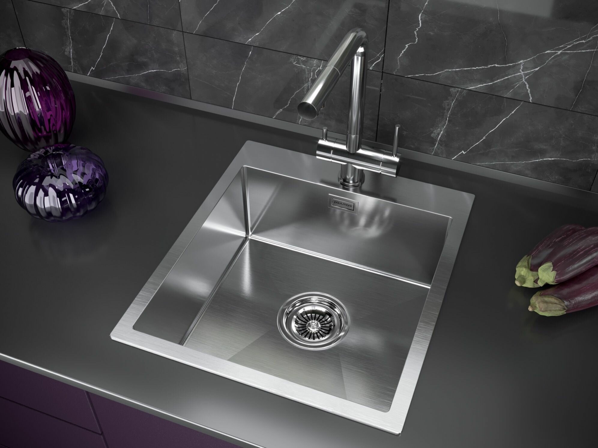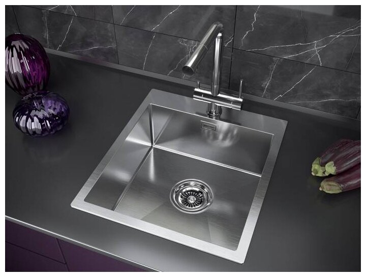 Кухонная мойка из нержавеющей стали AISI 304 Paulmark NECKAR, 450х510 мм, шумопоглащающее покрытие, отверстие под смеситель, универсальный монтаж, цвет брашированная сталь, PM804551-BS