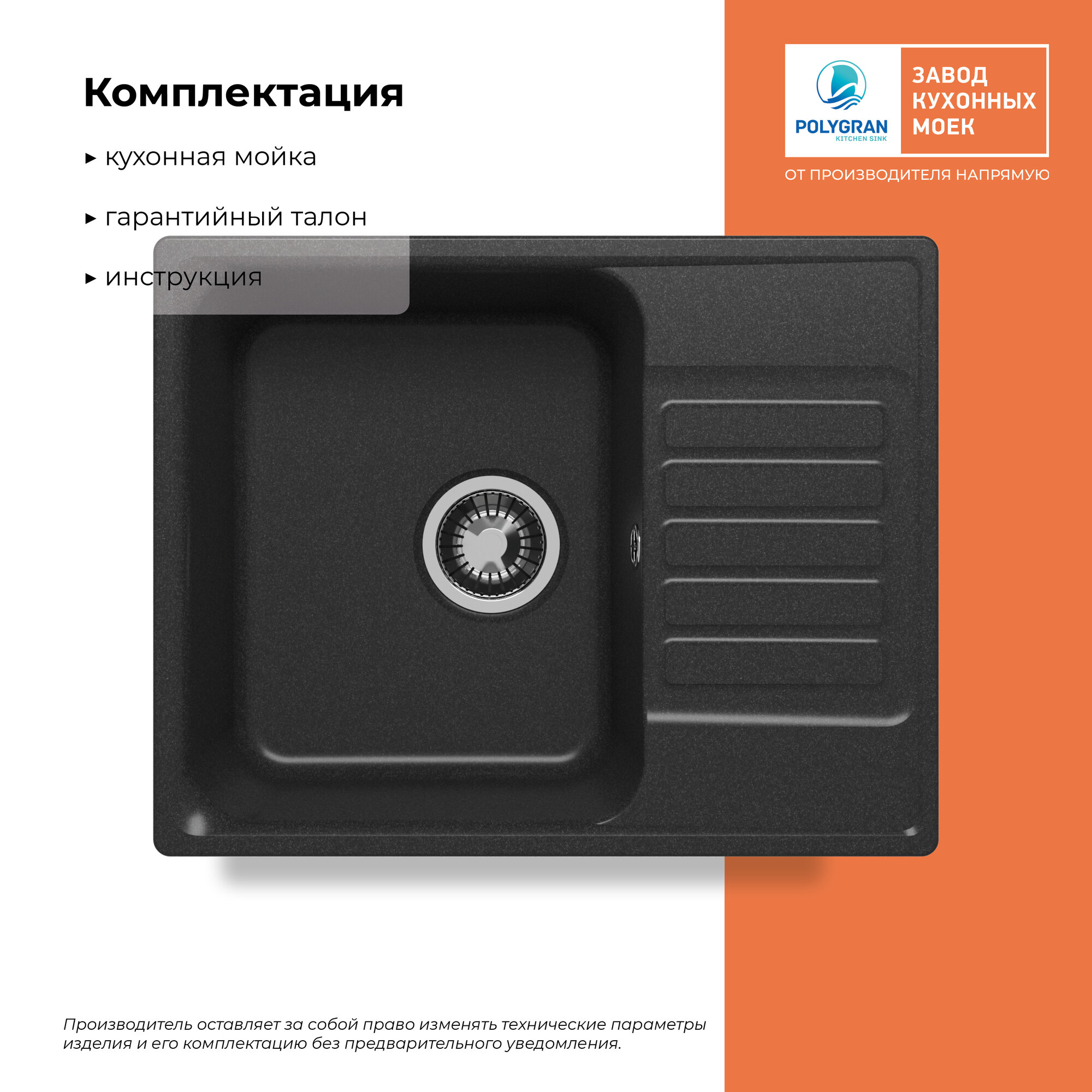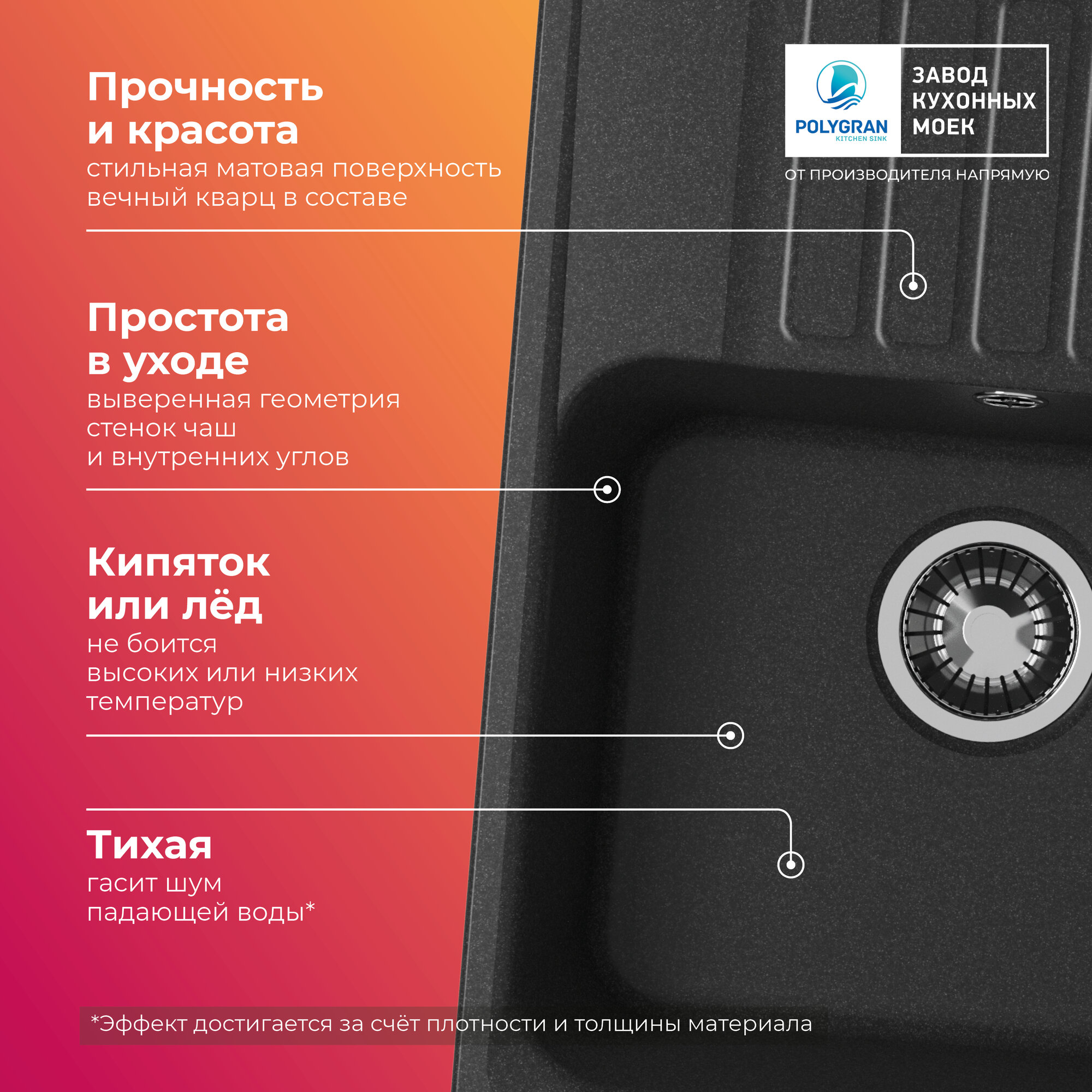 Кухонная мойка Polygran Quartz Bond 600 уголь