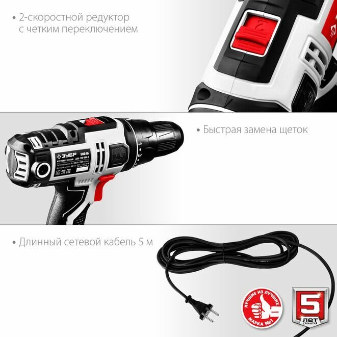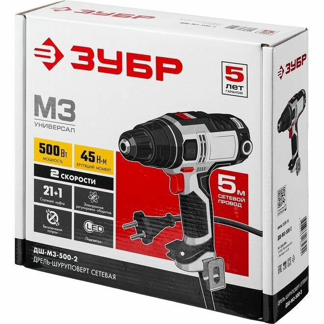 Дрель-шуруповёрт ЗУБР ДШ-М3-500-2, сетевой, быстрозажимной патрон, 45 Нм, коробка интересное: