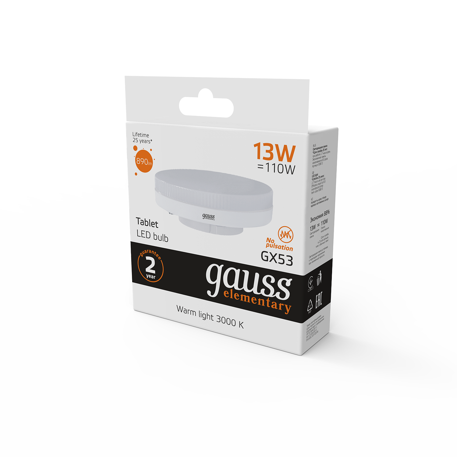 Светодиодная лампа Gauss LED Elementary GX53 13W 890lm 3000K (упаковка 10 шт.)
