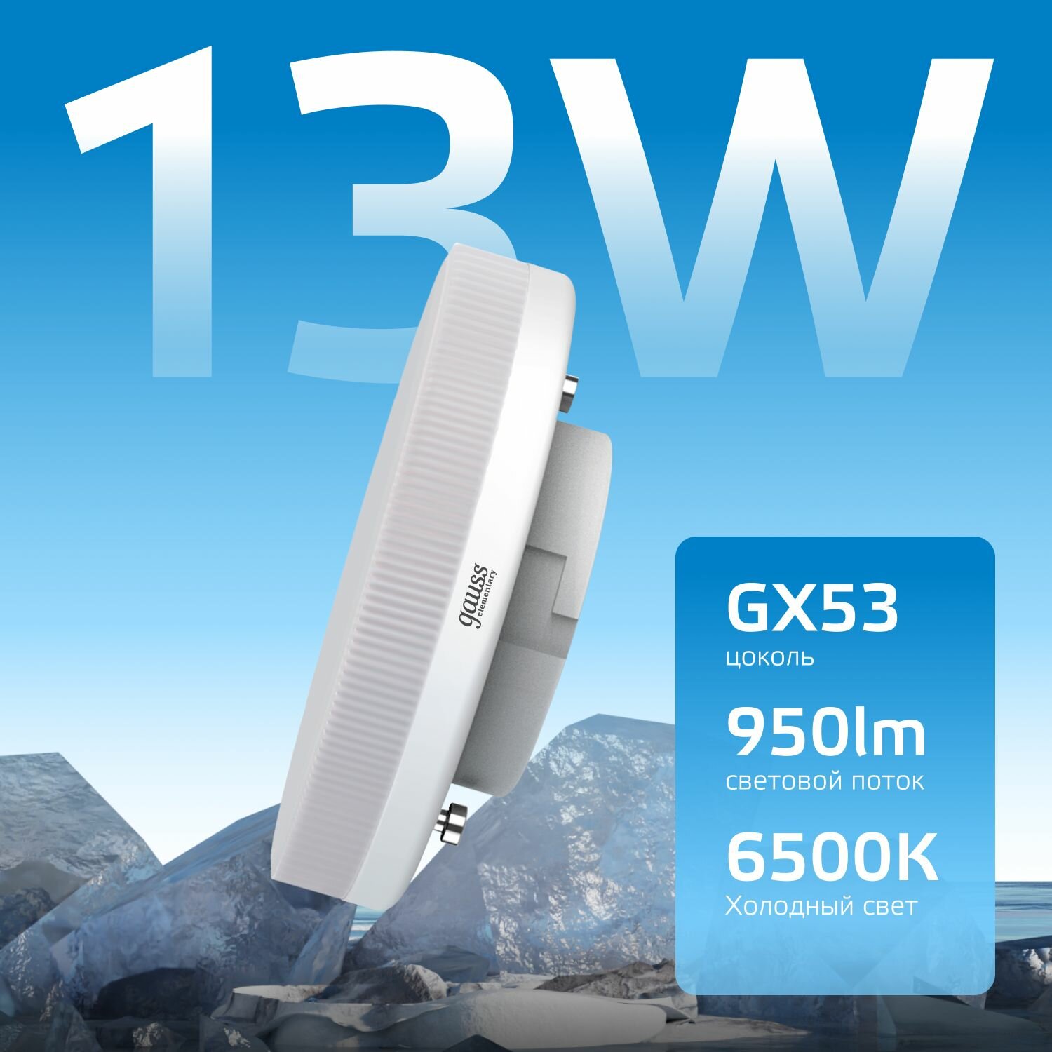 Gauss Лампа LED Elementary GX53 13W 890lm 3000K SQ83813