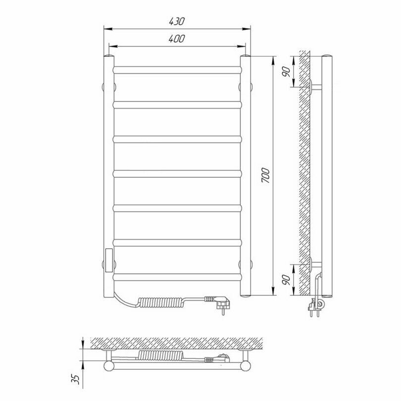 Полотенцесушитель электрический Laris Джаз П7 400х700 левое подключение
