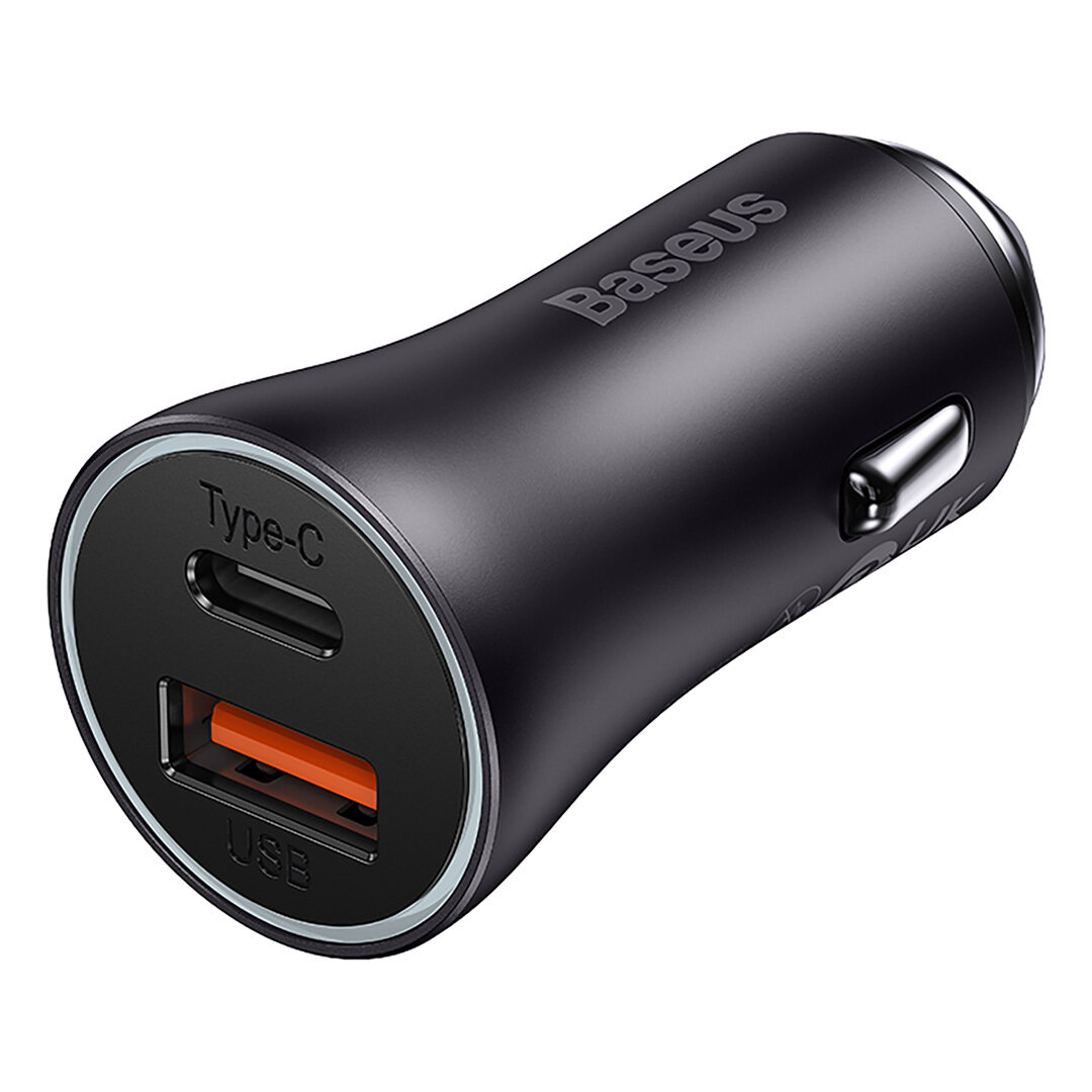 Автомобильное зарядное устройство Baseus Golden Contactor Max Dual Fast Charger Car Charger U+C 60W Dark Gray