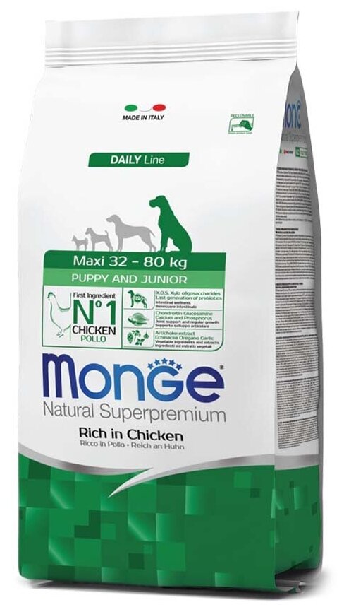 Сухой корм для щенков крупных пород Monge Daily Line Puppy and Junior Maxi с курицей 12 кг (Вес упаковки, кг: 12)