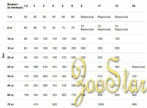| Возраст животного | щенки (до 1 года) |
