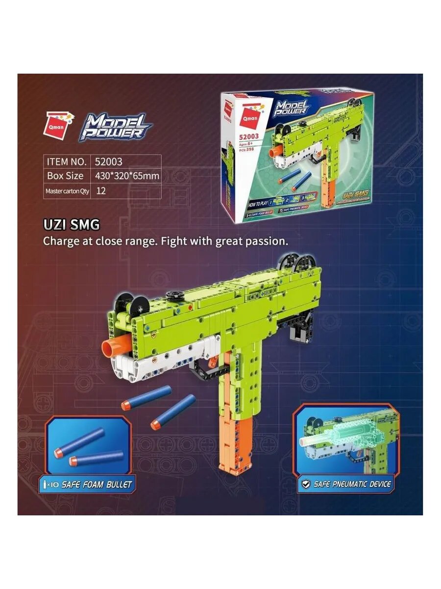 Конструктор Qman 52003 Пистолет Uzi SMG с пневмо механизмом 398 дет. 43х32х7 см