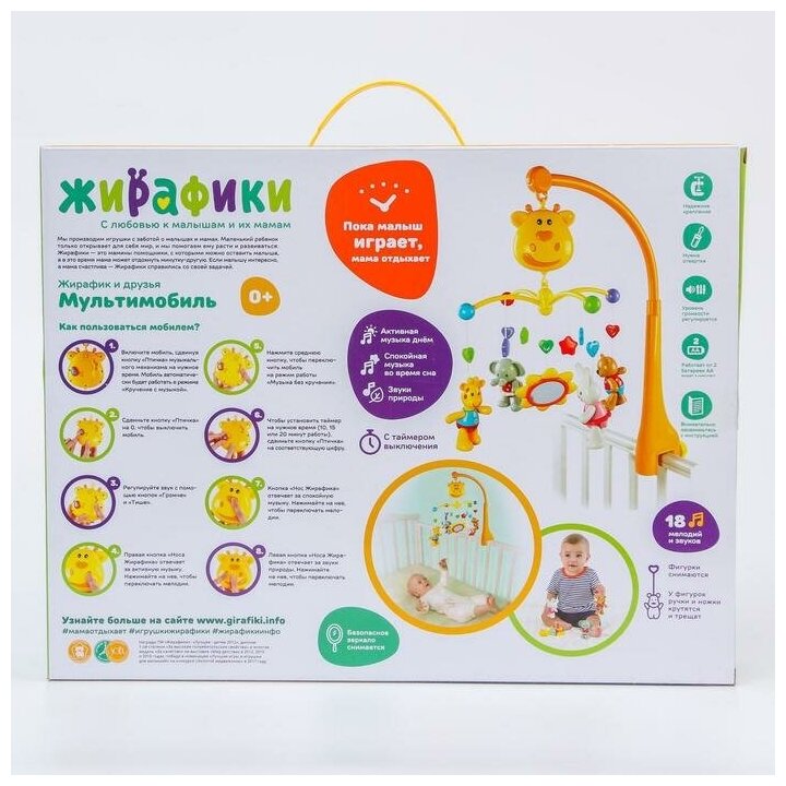 Ниже Вы можете прочитать отзывы на Мобиль в кроватку музыкальный «Жирафик и друзья», на батарейках, ознакомится с подробными характеристиками, посмотреть интересные обзоры и фотографии на Мобиль в кроватку музыкальный «Жирафик и друзья», на батарейках.