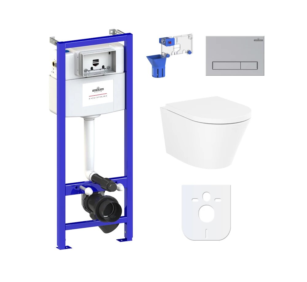 Подвесной унитаз комплект 7 в 1 Lavinia Boho Biore Rimless 87040102: унитаз, сиденье микролифт, инсталляция, кнопка, шумоизоляция, диспенсер