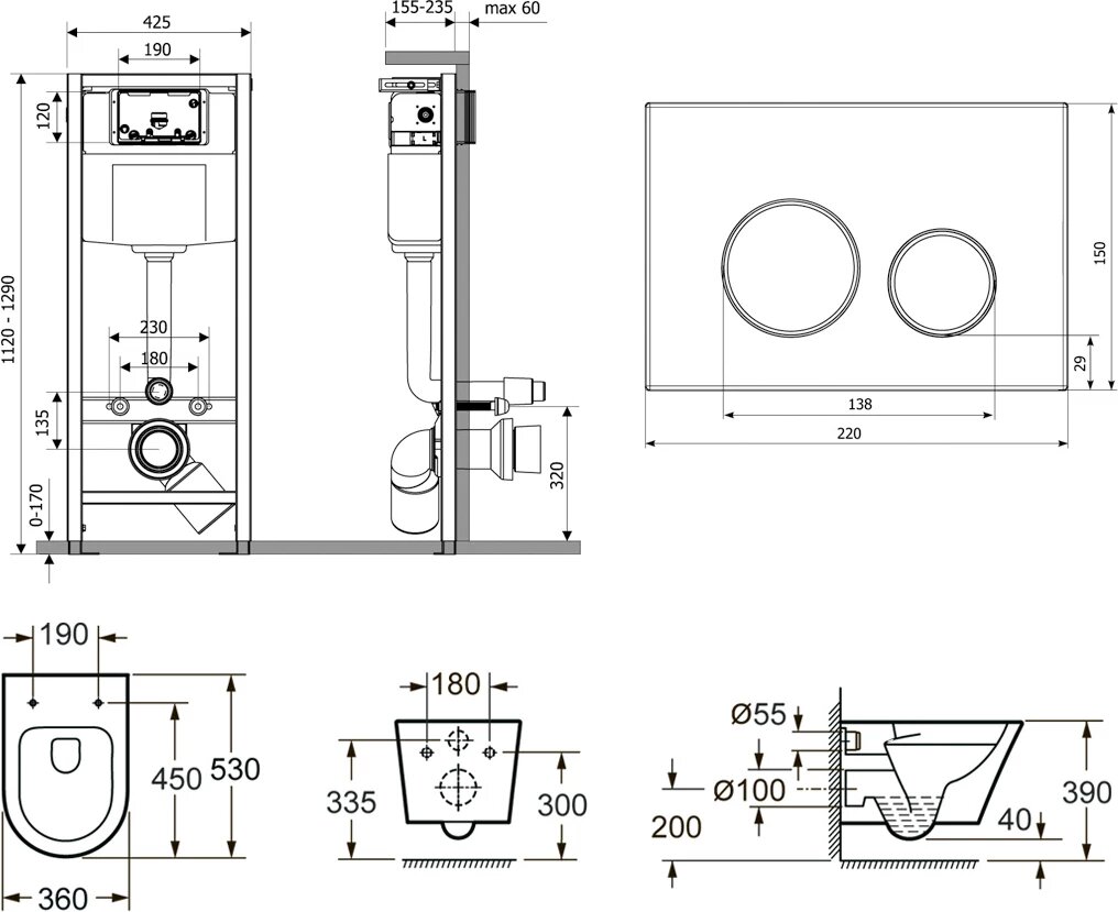 Подвесной унитаз комплект 7 в 1 Lavinia Boho Biore Rimless 87040102: унитаз, сиденье микролифт, инсталляция, кнопка, шумоизоляция, диспенсер