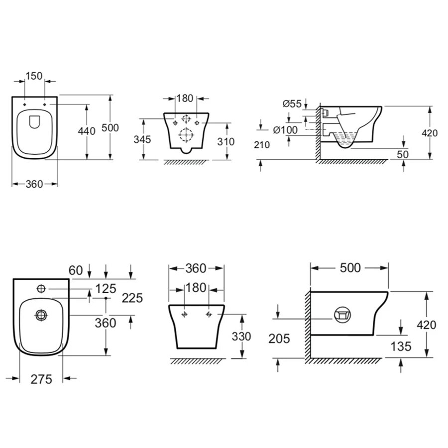 | Дополнительная информация | безободковая чаша подвесного унитаза с комплектом скрытого монтажа Bristol Rimless 3305101R; быстросъемное сиденье микролифт из прочного дюропласта с хромированными металлическими петлями 33290500; фигурный ключ для навески и фиксации унитаза; чаша подвесного биде Bristol 33050050; инструкция по монтажу и эксплуатации; гарантийный талон. |