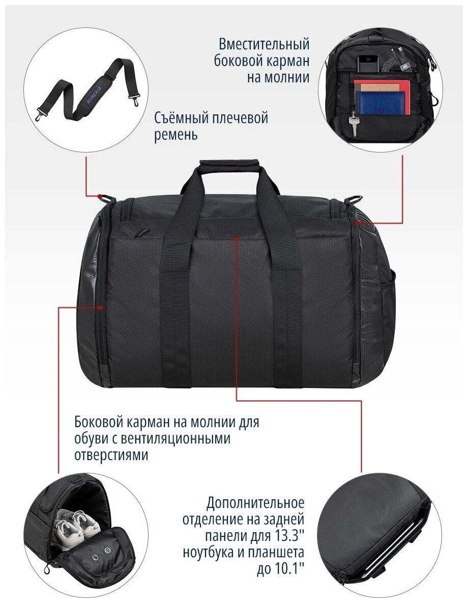 RIVACASE 5331 black Спортивная сумка с отделением для ноутбука до 13.3" и планшета до 10.1", 35 л, черная интересное: