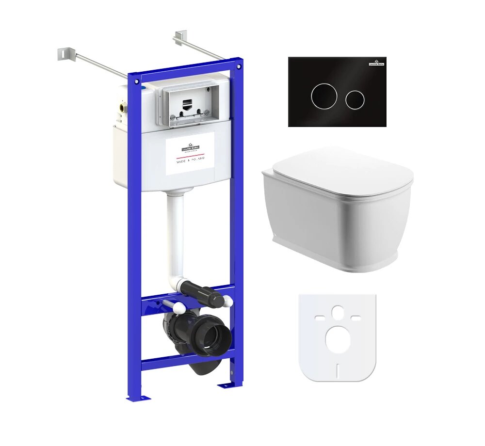 Подвесной унитаз комплект 6 в 1 Lavinia Boho Bell Pro Rimless 77050126: унитаз, сиденье микролифт, инсталляция, кнопка, шумоизоляция